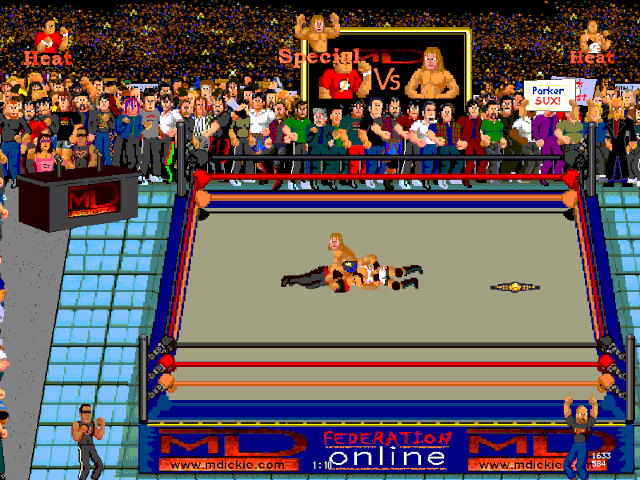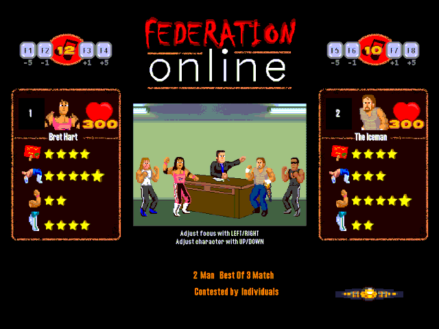 Federation Online plunges you into the world of wrestling, with the twist that the player is in change of a wrestling TV show, but also controls fighters during the actual matches. The game features many playable characters (possibly based on real-life wrestlers) and a good selection of different match types. The objective is not just to win, but also to climb the TV show ratings to the top.