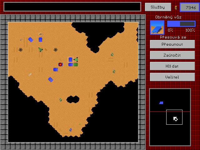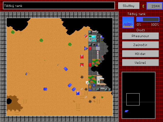 There's the usual story about a distant planet called Paranoia, which is the home of a rare and important resource, hopsinky. People want it, so, naturally, "vast armies have arrived", as shown in what is basically a reenactment of the Dune II intro sequence rendered in SVGA resolution. Gameplay wise, there are various superficial differences like hopsinky being harvested by manual labour, and having to build directly on sand instead of rocks. But the core gameplay is unchanged, you build up forces and direct your underlings, one by one, to crush all opposition and wipe out enemy presence.