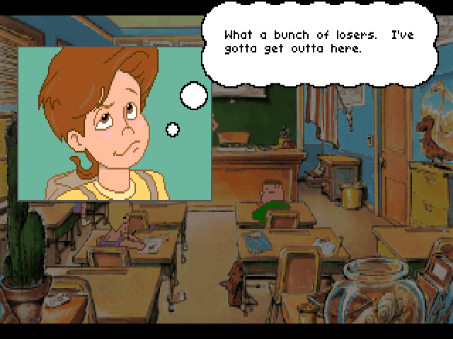 Willy Beamish is a light humour point-and-click adventure game that takes inspirations from such comedy classics as The Simpsons. Willy is a naughty schoolkid who means well but gets in trouble. The story revolves around him trying to enter a video game contest while avoiding repercussions for his misadventures a school.